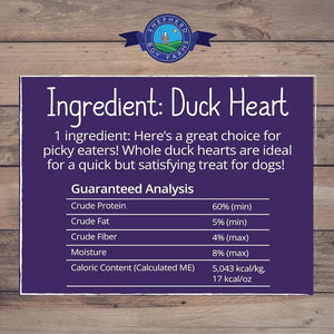 - Each treat is made from raw, diced duck heart with no added or removed ingredients.
