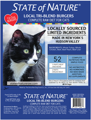 State of Nature Frozen Raw Tri-Blend Burgers for Cats