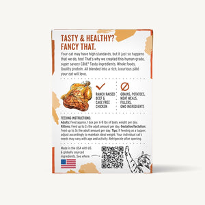 Your cat may have high standards, but it just so happens that we do, too! That’s why we created this 100% human grade, super savory Câté™ made with ranch raised beef and cage free chicken. Tasty ingredients. Whole foods. Quality protein. All blended into a rich, luxurious pâté your cat will love. And, unlike other pâté products, our Câté recipes are free of any grain, fillers, GMO ingredients and more.
