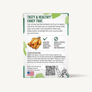 Your cat may have high standards, but it just so happens that we do, too! That’s why we created this 100% human grade, super savory Câté™. This chicken recipe is made with delicious cage free chicken using only whole muscle and organ meat. Tasty ingredients. Whole foods. Quality protein. All blended into a rich, luxurious pâté your cat will love. And, unlike other pâté products, our Câté recipes are free of any grain, fillers, GMO ingredients and more.