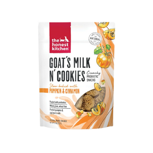 The Honest Kitchen believes that good dogs shouldn't settle for boring biscuits! With each bite of our Goat’s Milk N' Cookies, your pup gets a delicious dip of rich goat’s milk, pureed pumpkin and a touch of sweet cinnamon. Each little cookie is slow baked in small batches and full of probiotics to support a happy belly. Flavor meets function in every bite.