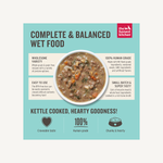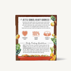 WET DOG FOOD STEW: Kettle-cooked in small batches for a hearty, chunky texture in a bone broth reduction.