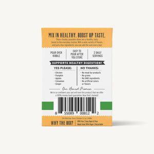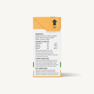 We believe that variety is the spice of life. That’s why we created Pumpkin Pour Overs. This human grade, tasty pourable stew is full of cage free chicken, fiber-rich pumpkin, and pureed apples with a hint of cinnamon. It’s a tasty and nutritious way to add whole food goodness to whatever is in their bowl. With a wide variety of flavors, just a few ingredients, and an easy-to-use box, you can easily boost their bowl every day with our full line of Pour Overs.