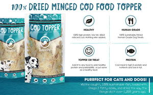 - This high protein Cod Topper is made with only dehydrated wild caught Icelandic cod and loaded with essential amino acids.