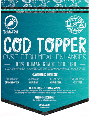 - Tickled Pet Cod Topper meets the rigorous FDA safety standards to use the label 'human grade', ensuring the highest quality dog treats.