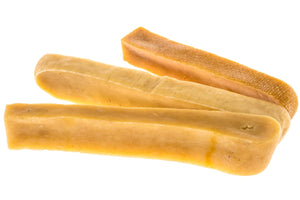 The Golden Himalayan Dog Chew is a very long-lasting dog treat that is made by boiling yak and cow milk together and then drying it for several weeks to create a hard chew. Dogs must work the end of the treat for hours to make it soft and edible. It is 100% natural with no preservatives. It is an authentic Himalayan cheese eaten by the people. When you give this Golden Himalayan Dog Chew to your pet, you know that you are providing them with hours of high-quality eating entertainment. Packaged by weight, quantities, and size vary.
