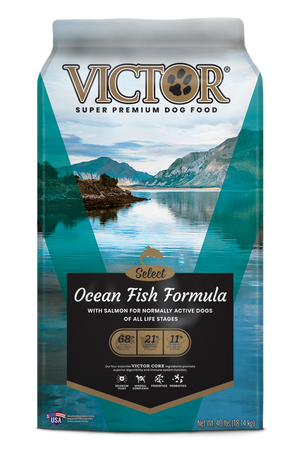 VICTOR Ocean Fish with Salmon Dog Food is a grain inclusive formula that uses Salmon and other Ocean Fish as it's primary protein sources, giving this formula high levels of Omega 3 fatty acids. As this formula does not include poultry, corn, gluten or wheat, it makes a good option for pets with food sensitivities.