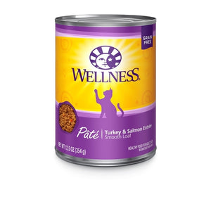 Wellness Canned Turkey & Salmon Formula provides two sources of high quality protein and essential fatty acids.. We use USDA Turkey free of added hormones and steroids as well as ethoxyquin-free salmon as a source of protein and long chain Omega 3 fatty acids which are critical for healthy skin and coat, proper body function and enhanced learning. This recipe also includes delicious sweet potatoes and carrots as an excellent source of vitamins, minerals and beta-carotene. Fresh, whole cranberries and blueberries are added to help maintain proper urinary tract health.