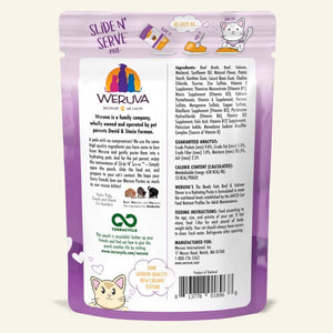 Extend the honeymoon period with this fantastically paired formula that puts beef and salmon together. The cuts of beef and salmon blend perfectly to create a new unified paté that will make your cat say “I do” every time you open a pouch.