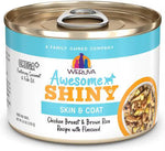 - Weruva Awesome Shiny supports skin and coat health with chicken, brown rice, and flaxseed.