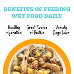 - Your pup will enjoy the flavor of chicken breast and brown rice in a shredded wet food formula.
