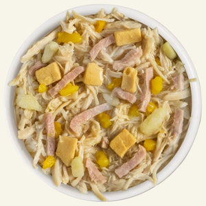 Chicken (Boneless, Skinless, White Breast), Water Sufficient For Processing, Egg, Pumpkin, Sweet Potato, Ham, Potato Starch, Sunflower Seed Oil, Dicalcium Phosphate, Xanthan Gum, Choline Chloride, Vitamin E Supplement, Zinc Sulfate, Thiamine Mononitrate (Vitamin B1), Nicotinic Acid (Vitamin B3), Ferrous Sulfate, Calcium Pantothenate, Vitamin A Supplement, Potassium Iodide, Manganese Sulfate, Vitamin D3 Supplement, Copper Sulfate, Riboflavin Supplement (Vitamin B2), Pyridoxine Hydrochloride (Vitamin B6), Folic Acid, Vitamin B12 Supplement.
