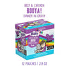 Turn meal time into yum time for your best feline friend with the BFF OMG Booya! Beef & Chicken Dinner in Gravy Grain-Free Cat Food Pouches. Made with beef broth, grass-fed beef and cage-free chicken as the top ingredients, plus essential vitamins and minerals, it provides a gravylicious and balanced diet for adult kitties. Since it’s packed with broth, it’s a great way to add much-needed hydration to keep your pal healthy. Plus, it’s made with sustainably sourced ingredients in state of the art food facilities with nothing artificial.