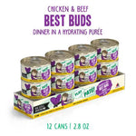 Treat your best bud to a su-paw tasty meal when you fill his bowl with BFF Play Pate Lovers Chicken & Beef Best Buds Wet Cat Food. It’s pureed to purr-fection and made with only simple, wholesome ingredients. He’ll find the taste and texture paw-fect, while you’ll appreciate it’s the whole kitten-caboodle with 82% moisture content that helps keep him hydrated. BFF knows what’s left out is just as important as what’s in the recipe, so there are no grains, gluten, carrageenan, MSG, artificial flavors, artificial colors or BPA. Plus, there are plenty of irresistible flavor options so you can switch up the menu and find your kitty’s fur-avorite.