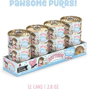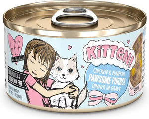 BFF Kitten Pawsome Purrs Wet Cat Food is the purr-fect start for your growing kitten’s nutritional needs. Made with cage-free chicken and tuna, this grain-free and gluten-free recipe is also free from carrageenan, corn, wheat, soy, and artificial colors and preservatives. Produced in human food facilities, you can trust the real and high-quality ingredients in every can. As a family-owned and operated company, Weruva understands the importance of providing the best for your furbaby. Give your kitten a happy and healthy start with this complete and balanced diet.