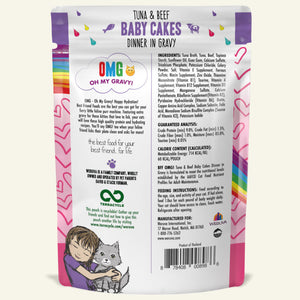 Your lil’ Baby Cakes will be one happy kitty once they discover the high-moisture and tasty flavors in this meal. The delectable tuna and beef in gravy will leave your cat meowing for more!