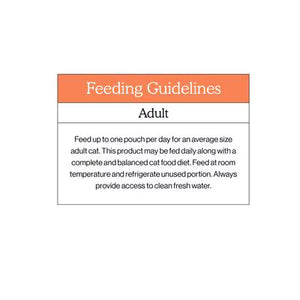 Feed up to one pouch per day for an average-sized adult cat. This product may be fed daily along with a complete and balanced cat food diet. Feed at room temperature and refrigerate unused portions. Always provide access to clean fresh water.