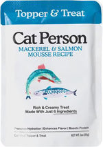 Cat Person's Mackerel & Salmon Mousse Recipe Meal Topper & Treat is intended for intermittent or supplemental feeding only. This product may be fed daily as a treat or topper to Adult cats along with a complete and balanced cat food. Do not feed to Kittens.