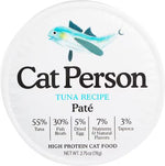 Cat Person Tuna Grain-Free Pate Wet Cat Food is specifically designed for feline health and the high standards of kitty lovers. This natural, grain-free wet food provides your furry friend with the majority of their daily water needs. With sustainably sourced seafood and no potatoes, corn, rice, or wheat, this is a recipe you can rely on. Each serving has more protein than the industry standard to support a healthier, leaner kitty physique. It’s also complete and balanced for all life stages, including kittens and grandcats. Plus, you’ll like that this wet food can be easily served and stored with the convenient Serve & Store Set.