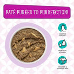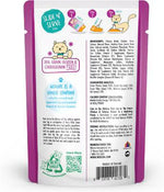 Weruva Cats in the Kitchen Cat to The Future Chicken & Salmon Pate Grain-Free Cat Food Pouches deliver delicious, quality food designed with your kitty’s health in mind. This protein-packed pate contains both chicken and salmon to appeal to even the pickiest feline—no time travel required! Simple, wholesome ingredients are gently pureed into this creamy and delicious food. You won’t find any grain, gluten, MSG or artificial flavors or colors here – just purr-fectly natural flavors. When your cat just can’t wait for breakfast and is eagerly weaving between your legs, this pouch will save you time. Just open it up and slide the food into your furbaby’s dish. Best of all, these pouches are recyclable, so you’re supporting both your kitty’s health and the planet’s health, too.
