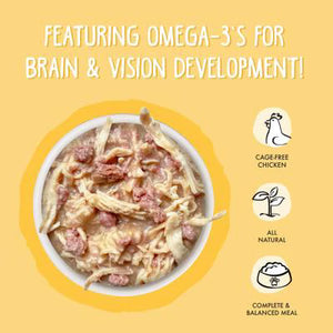 Start your puppy off on the right paw with Weruva Puppy Chicken Formula in Gravy Wet Dog Food. High-quality proteins, including grass-fed beef and boneless, skinless chicken, provide the necessary nutrients for your pup’s growth and development. With added omega-3 fatty acids for brain and vision development, this recipe promotes strong muscles, healthy skin, and a shiny coat. This recipe is a tasty way to give your puppy a nutritious and healthy start to life.