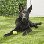 Jive is the most durable dog ball from West Paw yet. Jive is the only dog ball toy you need - bright, bouncy, and BPA-free. Jive comes in three sizes to fit any size dog. The large size dog ball is 3.25 inches wide, which is just a little smaller than the average softball. The small ball is 2.6 inches wide, which is similar to the size of a standard tennis ball. Other dog chew toys can be hard on dog's teeth, but even though Jive is guaranteed strong, it is gentle on dog's mouths.