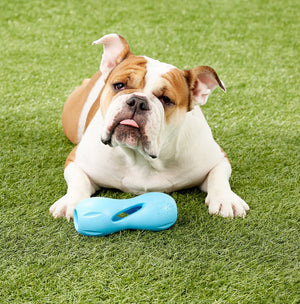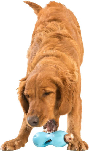 West Paw Qwizl Tough Treat Dispensing Dog Chew Toy is the perfect solution for pet parents with tough chewers. Designed to extend the life of expensive dog treats, this super tough toy keeps your pup entertained and occupied. The side openings release scent and taste, while the continuous interior hole allows treats to extend out. The flexible ridges can grip a variety of treat sizes, making it a versatile option for all of your pup’s treats. Not only does it prolong playtime, but it also stimulates your furry friend’s brain, supporting healthy growth. After the treats are gone, this mentally stimulating puzzle toy can still be used for fetching, tossing, and catching fun. And the best part? It’s non-toxic and dishwasher-safe for easy cleaning. So go ahead and pair it with your four-legged family member’s favorite treats like bully sticks, dental chews, nut butters, kibble, jerky, cheese chunks, smashed banana, dog biscuits, and more!