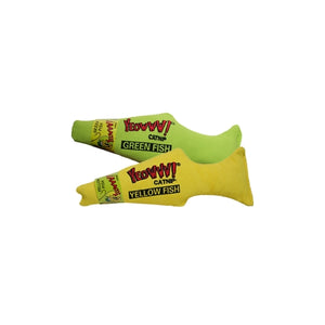 At over 7" long and completely filled with Yeowww! catnip, these fish are keepers! Comes in bright yellow and bright green.