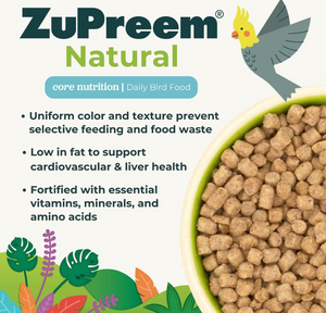 For nutritious everyday feeding, try ZuPreem Natural Bird Food Daily Bird Food for Medium Birds! This scrumptious daily diet features all the minerals, vitamins and amino acids your bird needs to thrive. Each tasty bite is packed with wholesome nutrition from celery, carrots, parsley, beets, blueberries, cranberries and ground flaxseeds. Plus, they’re made with a consistent color and shape to help prevent your pal from eating selectively. Take the guesswork out of meeting your bird’s nutritional needs with this complete diet from ZuPreem!