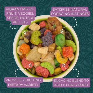 - Includes a delicious mix of flavors, textures and shapes to help keep your bird active, engaged and happy with their food.