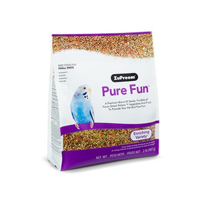 Mealtime is more exciting than ever with ZuPreem Pure Fun Bird Food For Small Birds! This yummy bird food features a delicious mix of premium seeds, pellets, fruits and vegetables. The interesting variety of textures and shapes tickles your pal’s foraging instincts to help them stay active, engaged and happy at mealtime. Pure Fun makes a great supplement to your pal’s regular pelleted diet. This pellet size is great for parakeets, budgies, parrotlets, canaries, finches and other small birds.
