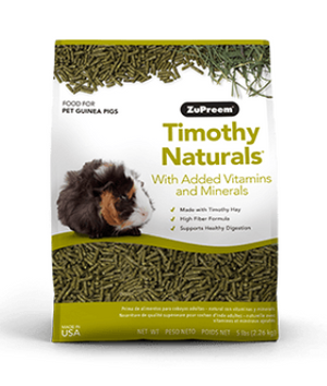 High-fiber daily nutrition for adult pet guinea pigs, made with sun-cured timothy hay for healthy digestion. Contains a stable source of Vitamin C your guinea pig needs every day.